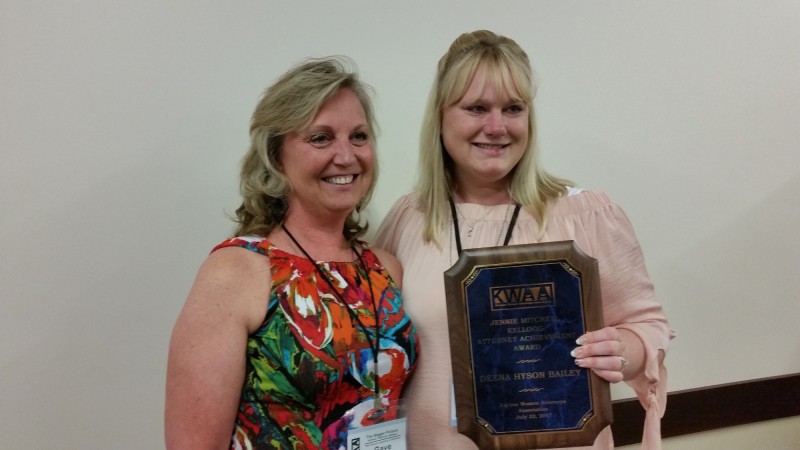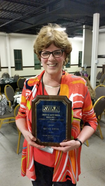 In 1999, KWAA presented the first Jennie Mitchell Kellogg Achievement Award. The Award is named for the first woman admitted to the practice of law by the Supreme Court of Kansas. The Award is presented each year at the annual conference to a member who meets the following criteria: